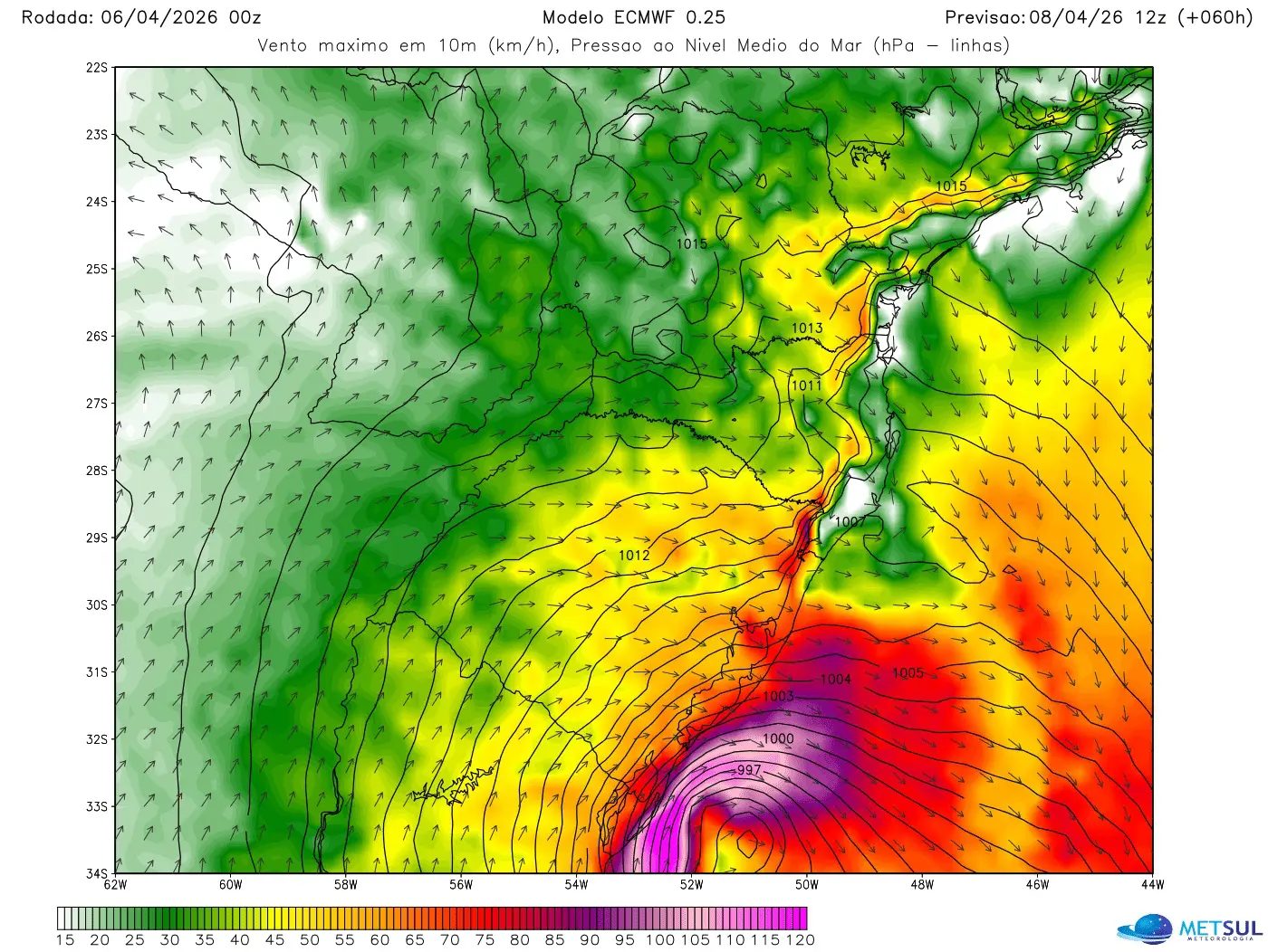 O Rio Grande do Sul entra em alerta nesta terça-feira devido à atuação de um ciclone extratropical e