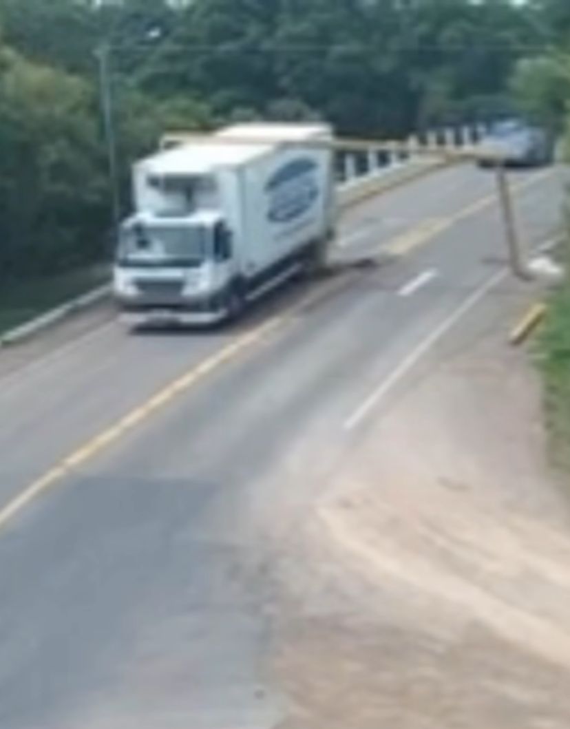 Um caminhão derrubou a goleira de proteção instalada na Ponte Parobé–Taquara, na Estrada Velha, na d