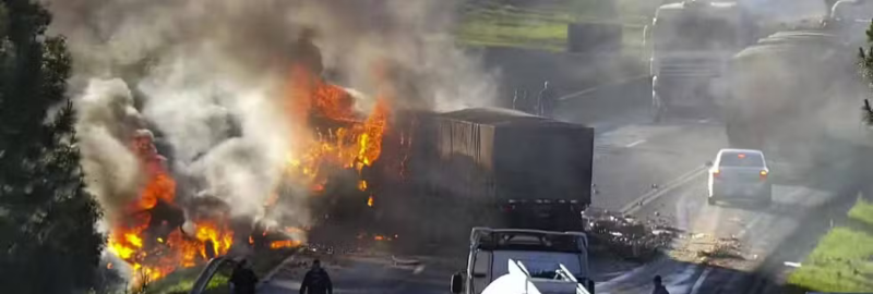 Duas pessoas morreram após um acidente de trânsito envolvendo caminhões na BR-386, em Fontoura Xavier, na Região Norte do Rio Grande do Sul, na manhã desta quinta-feira. A informação foi confirmada pelos bombeiros de Soledade. As vítimas não tiveram as identidades divulgadas. A colisão provocou um incêndio e bloqueou o trânsito no quilômetro 272 da rodovia. Conforme informações preliminares, um dos veículos carregava soja e o outro transportava frutas.