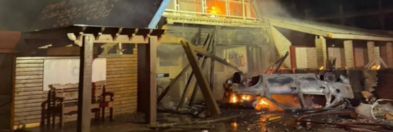 Um homem morreu na madrugada desta terça-feira após o carro que ele dirigia sair da pista na RS-786 e atingir uma imobiliária em Cidreira, no Litoral Norte. Conforme o Corpo de Bombeiros, o motorista já estava morto quando as equipes chegaram ao local. A vítima foi identificada como Thiago Godoy Bandaz, 40 anos. Um passageiro de 14 anos foi socorrido e encaminhado para atendimento médico. O veículo foi consumido pelas chamas. Já o estabelecimento teve queima parcial nos dois pavimentos.
