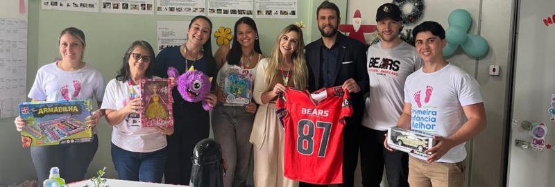 Ontem, a equipe do Programa Primeira Infância Melhor de Parobé recebeu uma doação de brinquedos realizada pelo Bears Futebol Americano. A ação solidária faz parte da campanha de atendimento às Cartinhas de Natal, destinadas às crianças acompanhadas pelo programa no município. Os atletas e representantes do Bears visitaram a equipe para entregar os brinquedos arrecadados em suas atividades e mobilizações internas. A iniciativa fortalece o espírito comunitário e reforça a importância de parcerias que ajudam a transformar o Natal de muitas famílias.